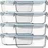 Razab 16 Pc (Set of 8) 30 Oz Glass Meal Prep Containers with Lids, Airtight Large Glass Food Storage Containers, Reusable Leak Proof BPA Free, Freezer to Oven and Dishwasher Safe