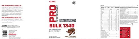 Pro Performance Results: Numbers matter when you want to increase mass and muscle. GNC Pro Performance Bulk 1340 contains 1,340 nutrient-dense calories and 50 grams of high-quality protein to help you increase size and overall body strength. Whether you mix it into a simple shake or a blended smoothie, GNC Pro Performance Bulk 1340 is a convenient, high-calorie mass gainer that supports muscle energy, recovery and growth. With Glutamine, BCAAs and Creatine, this dietary supplement is formulated to help you fuel your body’s demands, so you can power through each workout and training session. ^Product was tested for over 145 banned substances on the 2018 World-Anti-Doping Agency (WADA) Prohibited List via LGC skip lot testing protocol #ICP0307.