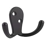 Amazon Basics Zinc Robe Hook Flat, Black, 5-Pack | Curved