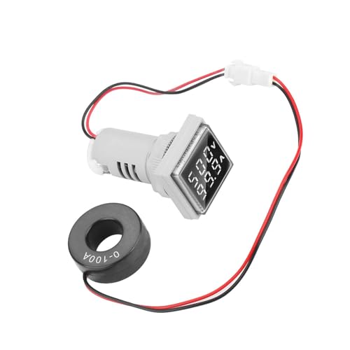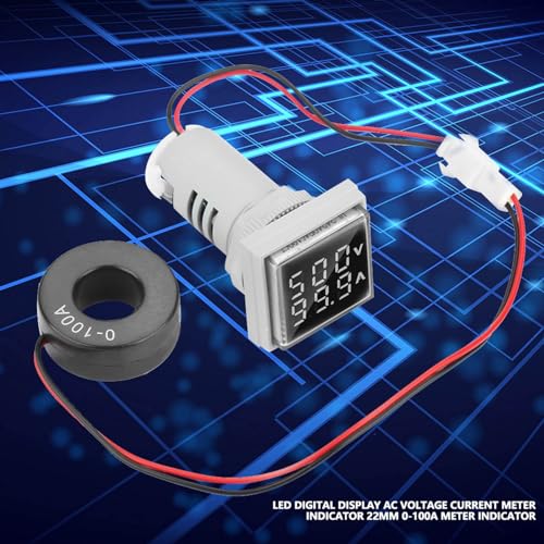 LED Display Voltmeter, Voltage Tester Current Detector 22mm Display Panel Voltmeter Ammeter AC 0-100A 60-500V Meter Indicator (White)