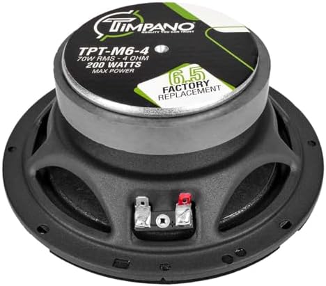 Altavoces para coche Timpano TPT-M6-4 de 6,5 pulgadas, 4 ohmios, 200 vatios de potencia máxima, altavoz de repuesto OEM para coche, fáciles de instalar sin amplificación (par)