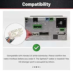 Replacement for Honda : 2003-2011 Accord, 2006-2011 Civic, 2005-2011 CRV, 2003-2011 Element (non-LX), 2006-2011 Fit/Jazz,2005-2011 Odyssey, 2006-2011 Pilot,2006-2011 Ridgeline,2004-2011 S2000,2003-2011 Gullwing Replacement for Acura : 2005-2011 RL, 2005-2011 MDX, 2004-2011 TL, 2004-2011 TSX (except Type S), 2007-2011 RDX Aftermarket amplifier integration harness For help you to turned your radio to cd/aux at the same time can use CD-changer as well Wire harness comes with male and female plug eliminates cutting the OEM radio plug and helping to maintain your cars value Easy Use. Directly Plug and play not need to cut any of your car wire