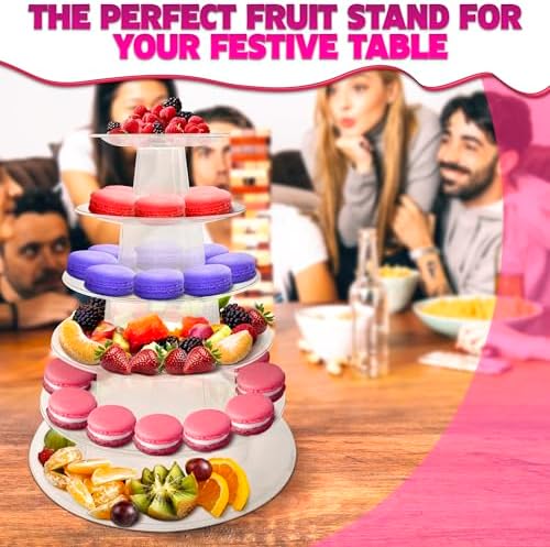 - Soporte de Calidad Premium para Fiesta: El soporte de torre de macaron está hecho de plástico PVC de calidad premium. Este soporte de exhibición de comida para fiesta de baby shower tiene una superficie súper brillante para reflejar la luz que lo hace más atractivo para los niños. La superficie del soporte de exhibición de galletas no tiene protuberancias.