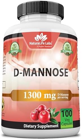 NaturaLife Labs Un estándar más alto D-Manosa orgánica 1,300 mg con extracto de arándano Activo rápido, elimina impurezas, salud del tracto urinario - 100 cápsulas vegetarianas