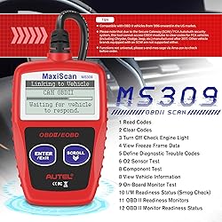 - Turn off check engine light Autel MS309 obd2 engine analyzer read engine related fault codes stored(hard codes) and pending codes (intermittent codes) in the ECU and display DTCs(diagnostic trouble codes) definitions on the TFT color display. It retrieves generic (P0, P2, P3, and U0), manufacturer specific (P1, P3, and U1) codes. The MS309 car engine code reader helps you figure out why the check engine light is on, fix the problem and clear the codes, turn off MIL(Malfunction Indicator Light) light and reset monitors. View Freeze Frame Data The Autel MS309 auto code reader is most useful while diagnosing continuous monitor faults like engine misfire and fuel control concerns. When an emissions related fault occurs, the OBD II system not only sets a code but also records a snapshot of the vehicle operating parameters to help in identifying the problem. This set of values is referred to as Freeze Frame Data and may include important engine parameters such as engine RPM, vehicle speed, mass airflow, engine load, fuel pressure, fuel trim value, engine coolant temperature and etc. Smog Check MS309 engine scanner code reader comes with readiness status check function that shows whether all the emission related systems and components are operating within allowable limits to help pass the annual Smog Check. Powerful Compatibility Autel MS309 car OBD2 scanner is Compatible with domestic, Asian and European vehicles, 1996 and newer. And the auto scanner supports all 5 OBDII protocols: KWP2000, ISO2000, ISO9141, J1850 VPW, J1850 PWM and CAN. Retrieve Vehicle Information MS309 automotive scanner retrieves the Vehicle Identification No. (VIN), Calibration ID(s), Calibration Verification Nos. (CVNs). This function is especially useful when you buy a used car and use this little pocket code reader to check whether the VIN matches and make sure the ECU has not been replaced by a garbage car.