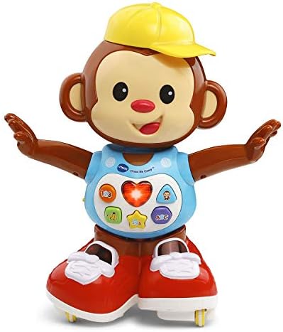 Catch him if you can! Chase Me Casey is an adorable little monkey that skates, spins and wobbles across the floor, encouraging your little one to dance and crawl after him. When your child gets close, Casey reacts with playful sounds and silly and encouraging phrases. Five colorful shape buttons on the playful monkeys shirt introduce letters, numbers, body parts, music and more. The chase is on!