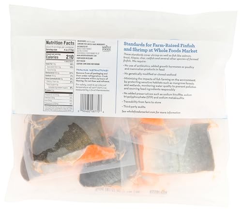 Standards for farm-raised finfish and shrimp at Whole Foods Market. These standards cover shrimp as well as fish like salmon, Trout, Tilapia, char, catfish and several other species of farmed finfish. We require the following. No use of antibiotics, added growth hormones or poultry and mammalian products in feed. No genetically modified or cloned seafood. Minimizing the impacts of fish farming on the environment by protecting sensitive habitats such as mangrove forests and wetlands, monitoring water quality to prevent pollution and sourcing feed ingredients responsibly. No added preservatives such as sodium bisulfate, sodium tri-polyphosphate (STP) and sodium metabisulfite. Traceability from farm to store. Third-party audits.