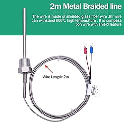 Type: K Type; Measuring Range: 32~1112°F (0~600°C) Probe Material:304 Stainless steel; Terminal: 2 Insulated forks; Thread: 2 Meters Probe size:6mmx100mm/0.23“x3.9“(D * L),Thread :NPT 1/2" How to use :Connect the red fork to the" + "positive pole , and the blue ones are for "-" negative pole Package Include:1 x Temperature Sensor Probe