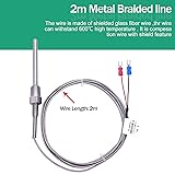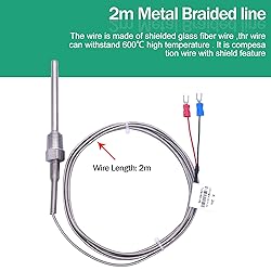 Type: K Type; Measuring Range: 32~1112°F (0~600°C) Probe Material:304 Stainless steel; Terminal: 2 Insulated forks; Thread: 2 Meters Probe size:6mmx50mm/0.23“x1.9“(D * L),Thread :NPT 1/4" How to use :Connect the red fork to the" + "positive pole , and the blue ones are for "-" negative pole Package Include:1 x Temperature Sensor Probe