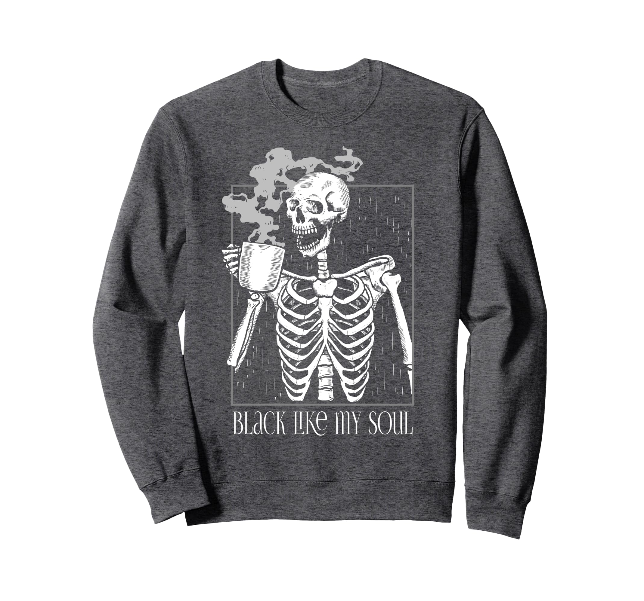 - A skeleton drinking a steaming hot cup mug full of coffee t-shirt, great if you're a little dead inside, or for a christmas gift for a coffee lover you know. great for the heavy metal or hard rock lover, makes a great gift! Wear to a coffee shop or coffeeshop, or while waiting on a coffee maker in your pajamas.