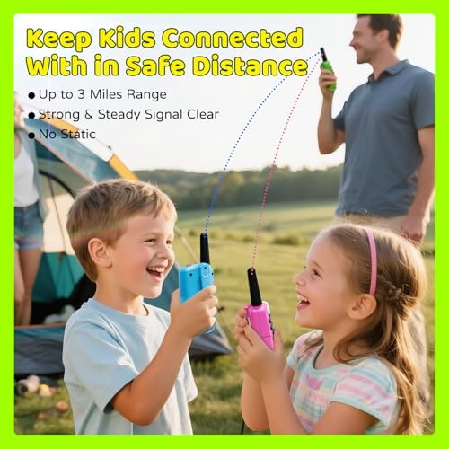 - 【3-Mile Crystal-Clear Range】: Reliable kids walkie talkies maintain strong signals through backyards, parks, and neighborhoods. Keeps children connected safely during adventures and group games with uninterrupted communication.