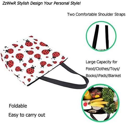 Chic Extra Large Shoulder Grocery Tote Bag, Fresh Ladybug Pattern Canvas Reusable Handle Bags for Men Women Gym Weekender Picnic Beach Travel Home Storage Market Shopping