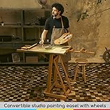 MEEDEN Versatile Studio H-Frame Easel - All Media Adjustable Beech Wood Studio Easel, Painting Floor Easel Stand, Movable and Tilting Flat Available, Holds Canvas Art up to 77"