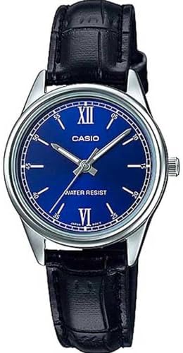 Reloj Casio LTP-V005L-2B para mujer analógico estándar con correa de cuero negro y esfera azul