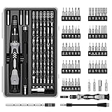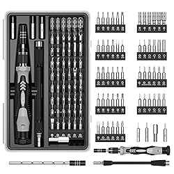 61 in 1 Screwdriver Kit: This 61 in 1 Precision Screwdriver Set includes 57 precision specialty bits, magnetized driver handle, flexible extension, 1/4" to 4 mm driver adapter, Which can repair many electronic devices and other tools High Performance Specialty Bits: These screwdriver bits are made of CRV steel, whose hardness can reach to HRC52-56, reliable and high performance Mangnetic Design: The extension shaft have mangnetic feature, which makes the screwdriver bits much more easy to use. You just need to choose the bit that you need and put it into the hole of the handle, and the bit will be sucked tightly because of the magnetism Flexible and Extension Shaft: This repair tool kit comes with adjustable extension shaft to fix some screws in deep position and reach narrow areas. A flexible shaft for stereo work as well as other large electronics where the screws are not on the surface Wide Application: Multi- Precision Screwdriver bits is a complete repairing tools for Pad, Phone, Tablets, Laptops, PC, Smartphones, Watches, Glasses, Camera PS4/Xbox controller and Other Electronic Devices Heartwarming Reminder: The logo of the screwdriver handle of the old and new versions will be different; The performance of the 2 versions is exactly the same