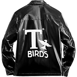 CLASSIC BLACK LEATHER DESIGN: The Black Grease T-Birds Leather Jacket for Men features a bold and timeless black color, ensuring you'll stand out in style at any occasion and complementing a variety of outfits PREMIUM QUALITY LEATHER MATERIAL: Crafted from durable and high-quality leather, the jacket provides unmatched comfort, making it ideal for everyday wear, weekend adventures, or themed events VERSATILE & FUNCTIONAL: The Black Grease T-Birds Jacket boasts a standard size that accommodates most men, ensuring a perfect fit so you can stay comfortable and confident while showcasing your unique style PERFECT FOR ANY OCCASION: From casual gatherings to themed parties or just a night out on the town, this versatile leather jacket seamlessly transitions across various settings and is suitable for all your upcoming events IDEAL GIFT FOR HIM: Surprise the special man in your life with this outstanding and unique gift option, making his wardrobe extra memorable and stylish -- the Black Grease T-Birds Leather Jacket for Men is a truly thoughtful present