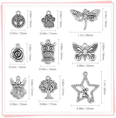 Material: Aleación, libre de plomo y níquel. 100% nuevo y de alta calidad. Color: plata antigua. Tamaño: 0.28" - 1.2" (7 - 30 mm).