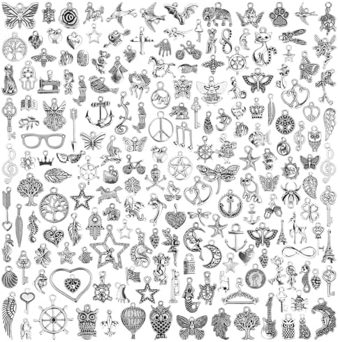 JIALEEY 200 PCS Venta al por mayor Lotes a granel de dijes para hacer joyas Charms de metal tibetano suave de plata Mixtos para Collar Pulsera Hacer joyas y manualidades