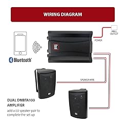 - The Dual Electronics DBTMA100 Micro Wireless Bluetooth 2 Channel Stereo Amplifier with Class D Amplifier/Universal Plug In/Stereo RCA Outputs/100 Watts Peak Power makes the best addition to any indoor or outdoor project. Your portable Bluetooth micro amplifier will connect effortlessly to your smart device, will remember past paired devices for instant connectivity and maintain a strong wireless connection for up to 100 feet. Dont let its compact and light weight construction fool you your micro Bluetooth amplifier packs a serious acoustic punch. With its efficient Class D design it has 100 Watts of Peak Power, 25W x 2 RMS, 4-8 Ohms of impendence and a frequency range between 20Hz-22kHz. There is no need to replace your wired speakers for Bluetooth ones when you can simply convert them with your Dual micro Bluetooth amplifier and get more power in the transition. Our design will allow you to easily connect your wired speakers via the Quick Release speaker wire outputs and Stereo RCA outputs are for expandability so you can start enjoying your favorite music, new stations or podcasts in no time. Its sleek design incorporates an illuminated heat sink and front panel volume, bass and treble rotary knobs for a true statement piece like no other.