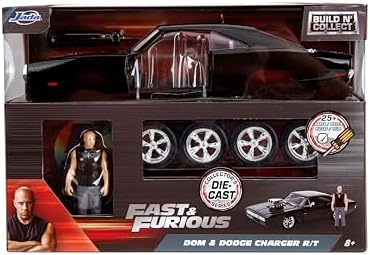 Jada Toys Fast & Furious Dom & Dodge Charger R/T, 1:24 Escala Kit de Modelo de Fundición a Presión Construir y Recolectar con Figura de Fundición a Presión de 2.75", Negro