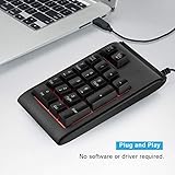 【Frosted Texture 19-key Numeric Keypad】The body is made of ABS plastic, matched with fine frosted texture processing, the hand feels delicate and comfortable, and wear-resistant. the keycaps are made of ABS melting, the characters are scratch- and not fading, and the skin-friendly feel of micro- is not easy to slip. 【Three-color Lighting Effect】Red, blue and three-color lighting effect (constant light mode: select a color to keep it always on, three-color breathing mode: breathing effect, cycle between three colors). Splash Design】Number Pad is using a floating keycap design, when a large amount of water splashes on the keyboard, the of the keyboard can instantly drain the water, which is and worry-. 【Arrangement of High and Low Buttons】19-key high and low layout, comfortable pressing, and more fun, personality freely. 【Exquisite and Small】Small body design, the trouser pocket can also be installed, where to and play. Non-slip foot pads are stable and reliable, Plug and play without driver.