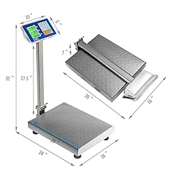 - Description:This 660lbs folding digital postal platform scale is great for both indoor use and outdoor use, such as super markets, warehouses and other wholesale markets. Made of rustproof stainless iron, it is convenient to clean. And the folding design allows you to carry it easily. Besides, it is so versatile that even if on the uneven road, the scale can work well thanks to adjustable skid proof feet. This digital scale features accuracy, intelligence and power saving. It is highly affordable and is good value for money. Give it a chance and you can get a very professional measurement equipment. Features:Easy to clean & rustproof stainless iron top90-degree folding design convenient for your transport & storageFree unit conversion between kg & lb under one buttonThree power supply: built-in battery, ac power supply, dc power supplyElectricity-saving & long standby time, 72 hours of continuous useHighly accurate & 7 unit prices memory storageOperation panel, LED green light & easy-to-operate keyboardAdjustable scale feet, easy to deal with uneven surfaceSuitable for factories, warehouses, and other distribution centersSpecifications:Color: As the picture showsMaterial: Stainless iron, plastic Product Opening Dimension: 16” x 24” x 32” (L x W x H)Product Folding Dimension: 16” x 30’’ x 7” (L x W x H) Min Weight Capacity: 4.40lb/2kgMax Weight Capacity: 660lb / 300kgWeighing Unit: 0.22oz/100g Use Time: Full energy can work continuously for 72 hoursPower Requirement: To use 4V battery, 110V power apply (included)Net Weight: 19.5lbs Package includes: 1 x Digital price computing scale1 x 110V-240V ac/dc adaptor with US standard plug1 x User manual