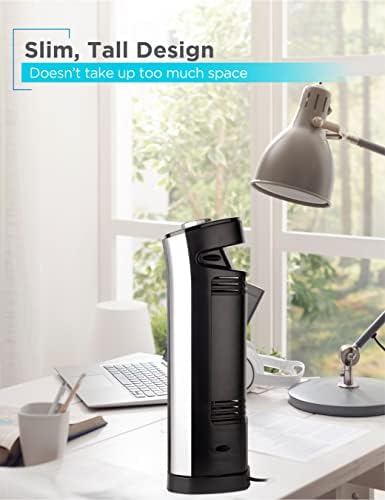 - Ventilador Portátil Pequeño: El diseño delgado y alto no ocupa demasiado espacio en las mesas de los dormitorios y escritorios de oficina. Ligero (2.3 lbs.) y con un asa incorporada, puede moverse fácilmente por la casa