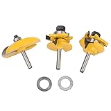 - Features: This router bit is made of cemented carbide for high hardness and long service life. Yellow heat coating prevents build-up of sawdust and resin. Sharp cutting would improve working efficiency and product quality. Usually used on electric wood routers or engraving machines to cut rabbet, for tenon jointing. It can be used for processing a wide range of materials including hard wood, soft wood, composite wood board. Specification: Material: Cemented carbide Shank Diameter: 1/4in Cutting Size: As picture Processing Thickness: 20~25.4mm / 0.79~1in Weight: 416g / 14.7oz (approx.) Package list: 3 * Router Bits 2 * Washers .
