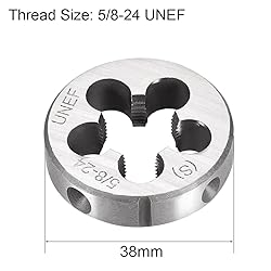 - Specifications: Thread Size: 5/8-24 UNEF Outside Diameter: 38mm / 1.5" Thickness: 10mm / 0.39" Accuracy Class: 6g Material: Tool Steel Features: 1. Solid round dies are suitable for general purpose threading. Great for maintenance and repair work. 2. Round Dies are perfect for re-threading existing threads in hard materials like metal or making new threads in softer material such as plastic. 3. Great for maintenance and repair work in the shop or field. Die size is etched on the surface for easy identification. Package: 1pcs x Round Die