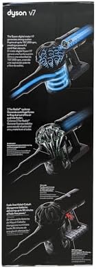 The Dyson V7 Fluffy Cord-free vacuum comes equipped with the soft roller cleaner head. Invented for hard floors, the soft roller cleaner head removes large debris and fine dust simultaneously. It has 75% more brush bar power than the Dyson V6 Cord-free vacuum. The Dyson V7 Fluffy cord-free vacuum quickly transforms to a handheld for quick clean ups, spot cleaning and cleaning difficult places. Cord-free. Hassle-free. Powerful suction. HEPA filtration captures allergens and expels cleaner air. Up to 30 minutes of powerful fade-free suction. Trigger releases instantly. Battery power is only used for cleaning. Hygienic dirt ejector empties dust from the bin in a single action. 2 Tier radial cyclones – 15 cyclones, arranged across two tiers, work in parallel to increase airflow and capture fine dust. Max power mode provides up to 6 minutes of higher suction for more difficult tasks. Balanced for cleaning up top, down below and in between. All Dyson cordless vacuums quickly convert to a handheld for quick clean ups, spot cleaning and cleaning difficult places. Convenient docking station stores and charges the machine, and holds additional attachments. So it's always ready to go.