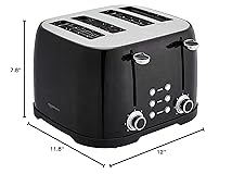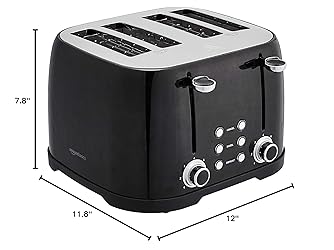 Amazon Basics 4 Slice Toaster, 6 Browning Settings, Removable Crumb Tray, Bagel and Defrost Function, Cancel Button, 1600W, Black