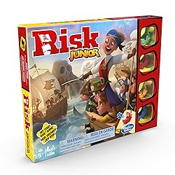 - Description INTRODUCTION TO CLASSIC RISK: Risk Junior is a great way to introduce children to the classic strategy game Risk. The game is designed for 2 to 4 players. Ages 5 and up PIRATE THEME: In Pirate-themed Junior Risk, kids move their pirate ship around the board to collect treasure and conquer islands. ROLLING THE DICE: To fight another player to take possession of their island and treasure, place the die in their ship, then press the lever. then press the lever to roll and discover the winner STRATEGIC CONQUEST GAME: Players deploy their pirates on the islands, defend their territories and collect treasure. The player with the most treasure at the end of the game wins. MY FIRST RISK: Risk Junior is a great way to introduce children to the classic strategy game Risk. It's a great gift for kids. Ages 5 and up Includes game board, 4 ship counters, 2 dice, 32 pirate tokens (8 red, 8 yellow, 8 green, 8 blue), 12 treasure cards and game rules. From 5 years old 2 to 4 players