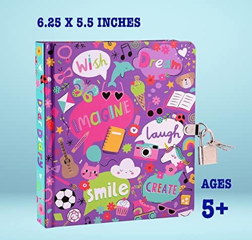 MOLLYBEE KIDS My Favorite Things Lock and Key Diary Notebook for Girls, 5.5 x 6.25 Inches, 208 Lined Pages, Padlock with 2 Keys, Purple