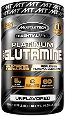 - GLUTAMINE POWDER – MuscleTech Platinum 100% Glutamine powder supplies 5g of l-glutamine per serving, which works to rapidly replenish the glutamine used during training