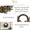 - Highlight your home with this artificial wreath made from year-round evergreens and mixed pine foliage, highlighted with realistic pinecones and bright red holly berries. Evoking the holiday spirit, this Silk wreath measures 22in. Around.