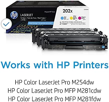 HP 202X Cyan, Magenta, Yellow High-yield Toner Cartridge for HP Printers (3-pack) | Works with Color LaserJet Pro M254, Color LaserJet Pro MFP M281 Series | CF500XM