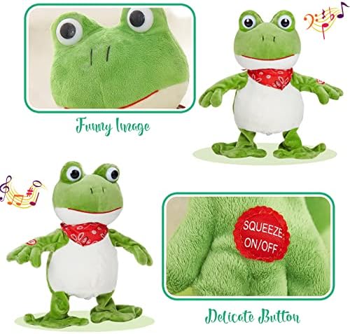 Houwsbaby 12” Green Frog Toy Croaking Frog Musical Stuffed Animal Frolick Froggy Shaking and Waving Electronic Interactive Animate Plush Toy Birthday Holiday Present