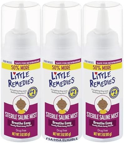 - Contiene 3 latas de Little Remedies Baby Medicine, Spray Nasal Salino Estéril para Bebé y Recién Nacido, 3 Oz cada una; producto elegible para FSA y HSA en los EE. UU.
