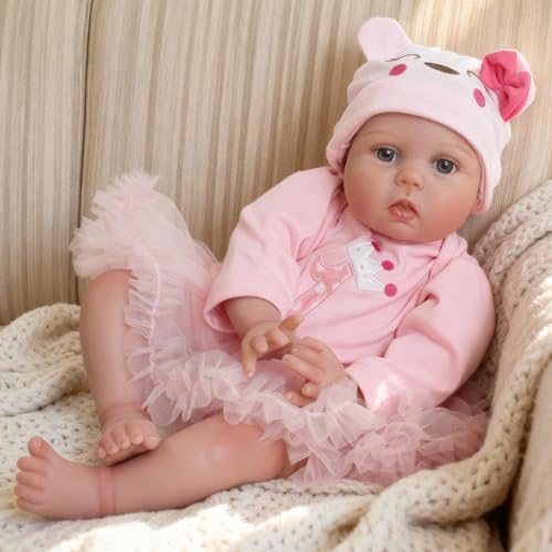 - Increíbles Detalles Realistas: Esta muñeca reborn de 22 pulgadas está meticulosamente pintada a mano para lograr mejillas sonrosadas realistas, tono de piel natural y pequeñas arrugas en las manos y los pies. Sus uñas presentan sutiles puntas blancas para un aspecto natural, cejas delicadamente pintadas a mano y tonos de piel gradientes aumentan su realismo. Mientras que las pestañas finamente enraizadas y las expresiones faciales realistas le dan una presencia verdaderamente adorable y vívida.