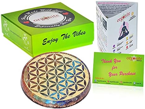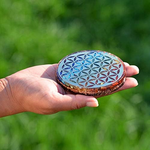 Orgonite Crystal Water Charging Plate –Chakra Balancing Coaster and Positive Energy Generator Flower of Life and with 7 Healing Crystals for Spiritual Balance, Meditation, Reiki Gifts(4 Inch Diameter)