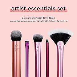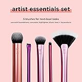 Real Techniques Artist Essentials Makeup Brush Set, Para Base, Rubor, Resaltador, Sombra de Ojos y Delineador, Herramientas de Maquillaje Profesionales, Cerdas Sintéticas, Vegano y Libre de Crueldad, 5 Piezas
