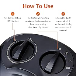 - Amazon Basics 1500W Ceramic Personal Heater with Adjustable Thermostat, Black