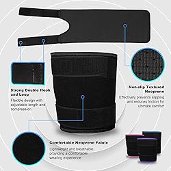 Effective Thigh Compression Sleeve: supregear thigh wrap provides support and targeted compression above thigh area; Great for helping increase blood circulation and delivering more oxygen, reduce recovery time as well as relieve musle stiffness and pain Comfortable and Durable: Made of high quality and soft neoprene material, lightweight and breathable; Textured neoprene effectively prevents slipping and reduces friction for ultimate comfort; The thigh support can be worn under or over clothing Fully Adjustable: Two premium elastic straps with fastening material closures could be adjusted into the length and compression to fit thighs up to 27" in circumference for best result; The ergonomic and flexible design allows this thigh wrap fits either female or male Active Lifestyles: Ideal for running, basketball, baseball, soccer, cycling, workout or other daily activities, aiming to relieve sprains, strains, pulled hamstring and quadriceps muscle strain SupreGear Warranty: 1 month hassle free return and 1 year limited warranty