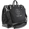 Bolsa de herramientas Klein Tools 510218SPBLK, bolsa de herramientas grande de lona de lujo de 18 pulgadas y organizador con 13 bolsillos y correa para el hombro, negra
