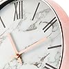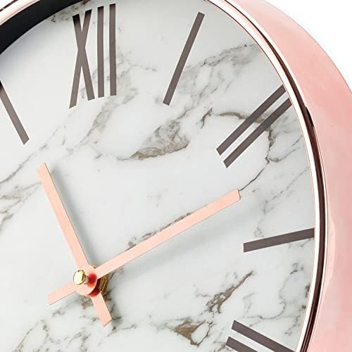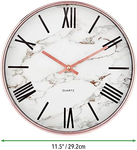 mDesign Modern Stylish Wall Clock for The Office, Bedroom, Kitchen, Bathroom, 11.5 Inch Diameter - Rose Gold Frame and Hands, Large Black Numbers on a Marble Background with a Clear Glass Cover