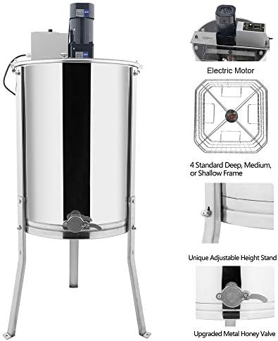 VINGLI Upgraded Electric 4 Frame Honey Extractor, Stainless Steel Honeycomb Spinner Drum with Adjustable Height Stands, Beekeeping Pro Apiary Centrifuge Equipment