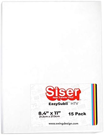 Vinilo para transfers de calor por sublimación EasySubli de Siser, 8,4 x 11 pulgadas, paquete de 15