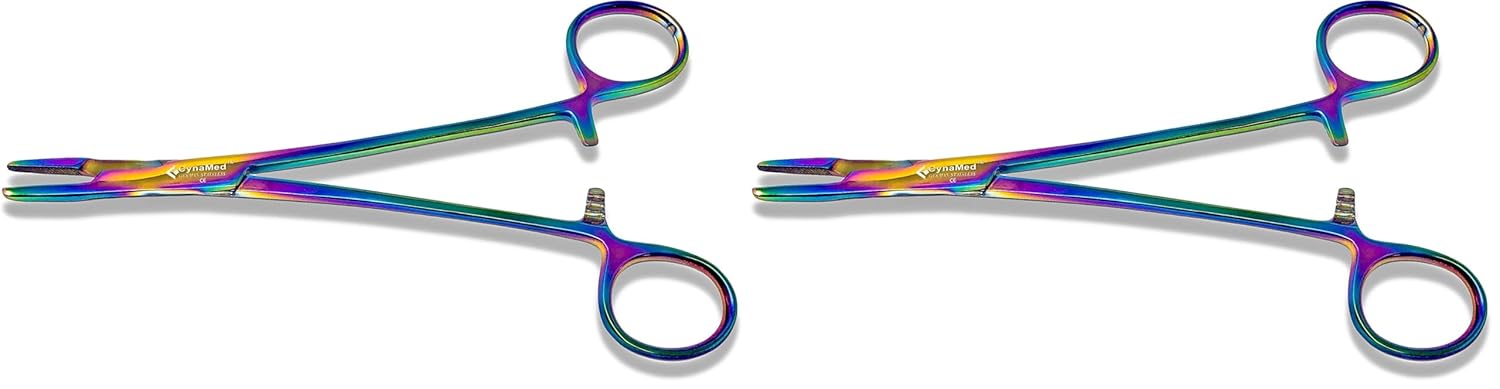 Cynamed Olsen Hegar Needle Holder Driver with Multicolor/Rainbow Titanium Coating - Premium Quality - Hemostat with Scissors and Locking Mechanism (6.5 in. (16.51 cm))