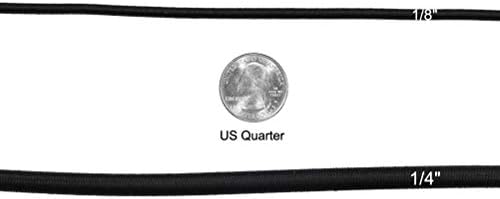 EKEV 1/8" × 25 ft Elastic Shock Cord Bungee Ropes - Black Heavy Crafting Stretch String from 10 25 50 & 100 Foot Lengths