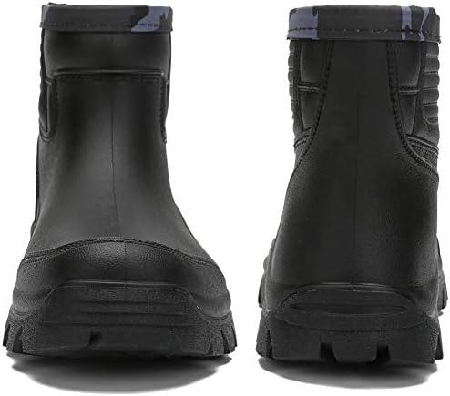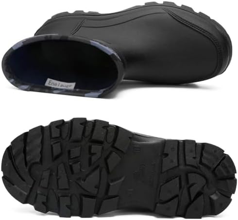 - lluvia impermeables Enelauge con botas de agua hasta el tobillo para hombre, material de suela PVC+NBR (caucho sintético), diseño antideslizante en la suela, sin fracturas, sin deterioro ni endurecimiento. El interior de las botas Wellington es de tela transpirable de alta densidad y poliéster de alta densidad. Perfectas para hacer jardinería, son cómodas y mantienen los pies secos.